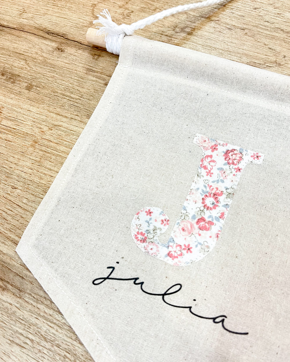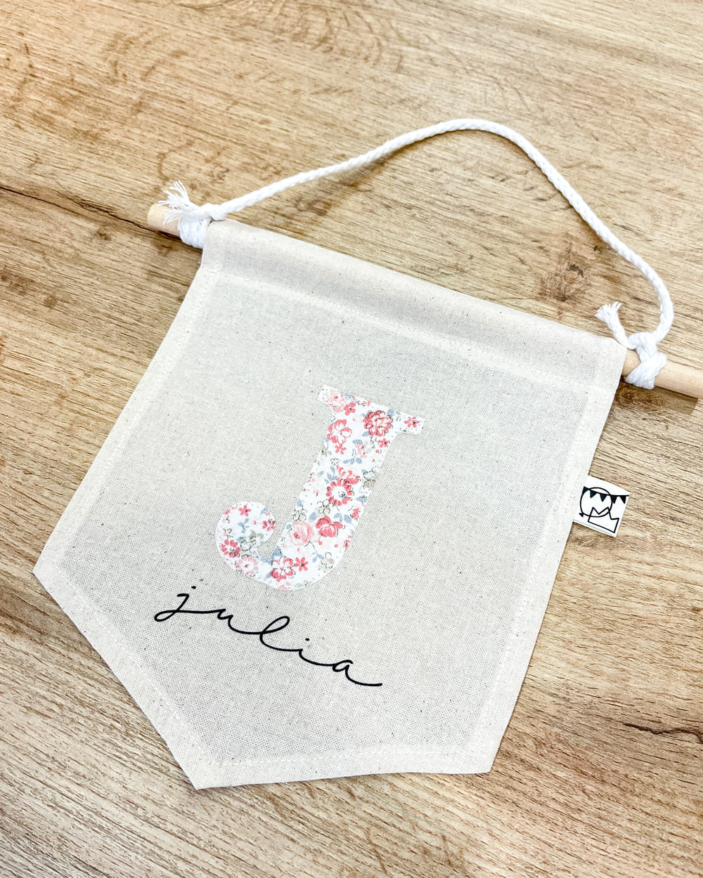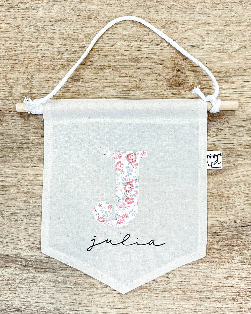 Dale un toque único y especial a tus espacios con nuestra banderola personalizada. Hecha con un tejido base de algodón rústico, esta banderola combina estilo y calidez. Personalízala con una inicial en tejido aplicado, disponible en varias opciones, y el nombre estampado en un diseño elegante. Su estructura incluye una barra de madera de pino natural sin tintes y un cordón de algodón, perfecto para colgarla de cualquier soporte. Ideal para decorar habitaciones infantiles, salones o espacios de trabajo con un toque personal.